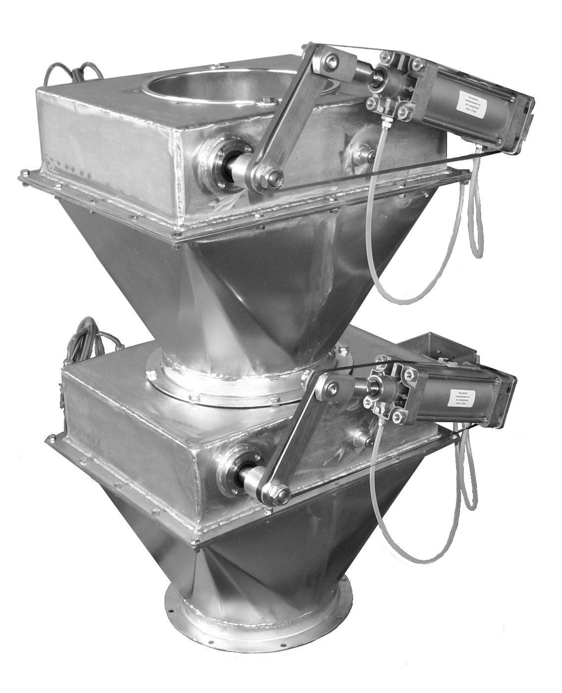Die singold Klappen sind in zwei Variationen verfügbar: als Einzelklappe für die schnelle und rückstandsfreie Entleerung von Behältern und als Doppelklappenschleuse, um Schüttgut schubweise weiterzubefördern.