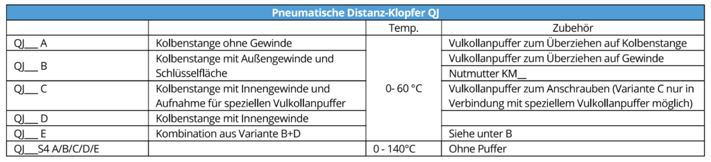 Unsere Distanz-Klopfer sind in folgenden Ausführungen erhältlich. Wählen Sie die für Ihre Situation passende Version aus. Für anspruchsvolle Anwendungen verwenden Sie unseren Online-Fragebogen.