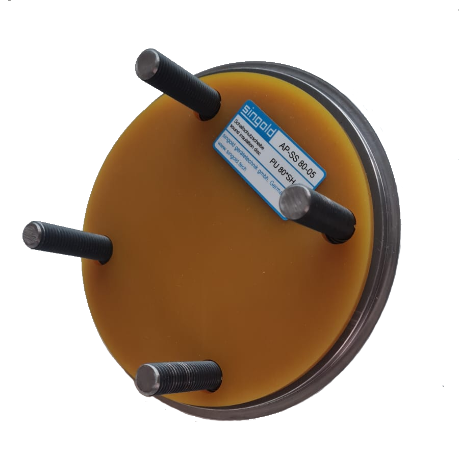 Our AP-SS sound insulation disc is clamped between the weld-on plate and the knocker.